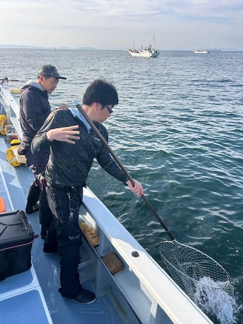 0.80~1.20kg 0~5匹 マダイ 0.80~2.50kg 0~4匹 クロダイ 1.00~2.00kg 0~4匹 18号船・3号船の2隻に分かれて、ゆったりと出船いたしました。 すると、1投目からいきなりヒット!本命をゲットして幸先の良いスタートに。 その後も終日、ジャンボイサキ・メジナ・クロダイなど嬉しいゲストのアタリが続き、皆さんしっかりお土産を確保。クーラーボックスの中も賑やかになりました。