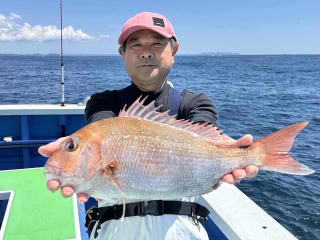 マダイ 1.50~2.60kg 0~1匹 アマダイ 最大1.00kg カサゴ サバ ヒラメ 最大6.70kg 0~1匹 アジ 最大45cm クロダイ イサキ オニカサゴ アヤメカサゴ カイワリ ホウボウ マダイ船。 潮色と流れ:薄濁ゆるい。 風向きと強さ:南東弱い。 波高:0-0.5M。 甘鯛1kg:高崎さん。 別船アジの泳がせ釣り竿頭:井岸さん。 泳がせ釣りに6.7kgの大型ヒラメが食いつきました! 泳がせ釣りでは3-4kgサイズの大きなヒラメも釣れていて、今回は7kg近くある大型が釣れました(^^)人気の泳がせロマンです! ノッコミ真鯛釣り、本日は早朝の活性が良し。その後は黒鯛・メジナ・イサキなどが釣れています 色々な魚種を狙った五目釣りでは後半の甘鯛釣りで1kgサイズ、48cmの大型甘鯛もゲット(^^) アジ釣りは40cm超えの大型もヒット!