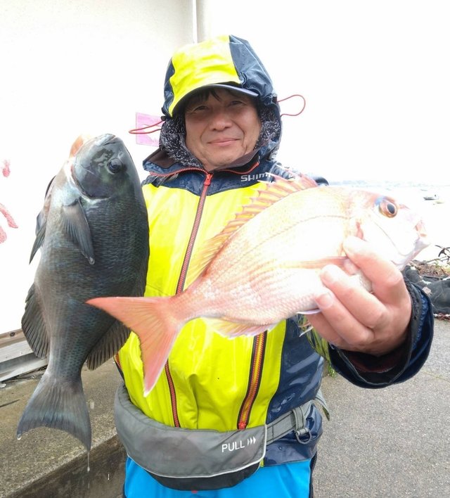 マダイ 0.40~2.40kg 0~4匹 イナダ 真鯛五目出船でした。 トップ4尾が2名!2kgアップの良型も顔出してくれました^^他にイナダ、メジナ混じりました♪ 予報に反して北風強風+雨で12時早上がりさせて頂きましたm(__)m 本日もご乗船頂きありがとうございました。
