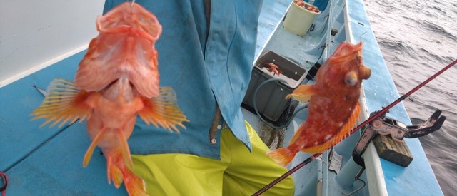 朝のうちサビキで餌用のアジ、イワシ狙い。 反応濃くイワシ主体に釣れた。 のち根魚狙いは潮トロリ流れベイトの反応見え良型カサゴ主体にヒラマサ、ハタ、ヒラメ、クロメバル交じり釣れた。