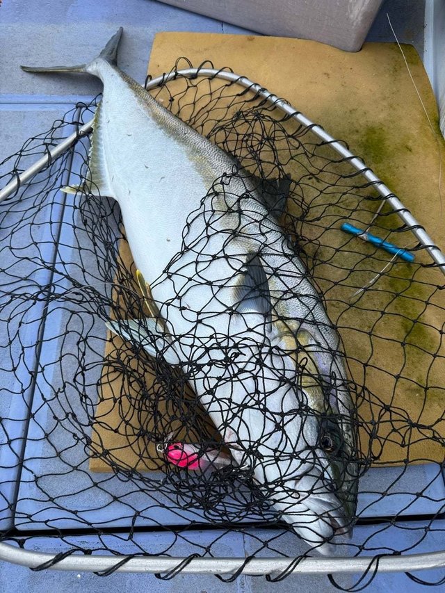 カンパチ 午前ヒラマサジギング開催。 春マサジギング! 外房のジギングは投げて攻めることがほとんどです。 投げるという動作があるので圧倒的にスピニングが有利になると思います。 ベイトタックルだとバックラッシュしてしまったり、そのせいでスプールがロックしてジグが飛んで帰ってきたりします。 スピニングタックルでもラインシステムが長かったり分厚くなってしまっているとガイドに絡まり、最悪ガイドに巻きついてジグが飛んで返ってきます。 怪我をしたり誰かを怪我させたりしてしまう可能性があります。 釣りを中断して港に帰り病院連れて行くことになってしまいます。 この時期は乗船人数も多く、慣れてない方ばかり。 今日も何度も何度もジグが船に飛んでかえってきてました。 たまたま人にあたってないだけ! 本当に危険です。 短くて真っ直ぐなFGノットを組んで下さい。 PRノットもダメ!危険です。 長くしても強くならないですよ。 短く真っ直ぐ。 編み込みが15〜17回編んであれば十分です ハーフハッチも6〜7回で十分。 リーダーに焼きこぶ作るのもダメ。 編み込みする時もハーフハッチする時もメインラインが張ってる状態にしてノット組んで下さい。 不安な方はどんどん聞いて下さいね! 同じ編み数で更に強くなる改造FGノット。 興味ある方は声掛けて下さい。