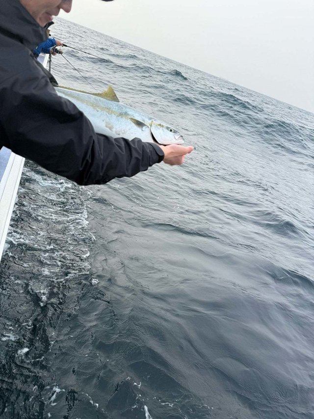 1日中曇っていて風もあったので肌寒いので1日でした。 朝から流れは速く重めのジグのがやりやすかったですね! ヒットしてくるのはサバばかり。 メジは即リリース。 お昼から。ジグにヒットはフックオフ。 キャスティングにも何度か出てきましたがなかなか乗らず…。 サワラにジグを切られたり夕方最後に1発出てきてくれました。 元気な引き!良い形! 頭にも針が掛かってしまってて流れも速かったのでよく引きました。 嬉しいヒラマサ! 船の上が明るくなってくれました。 おめでとうございました! 2倍サイズになってかえってきて。いや、3倍で!