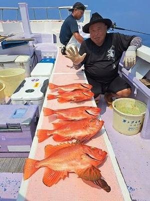 キントキ 25~41cm 2~11匹 カサゴ ハタ 0.70~1.50kg 0~1匹 AM5:00出船。 北東の風強く釣り辛かった。 他に、ハタ0.7~1.5キロ0~1尾と 良型ヒメダイ、かさごも多数混じった。 明日の出船は受付終了でしたが、うねりが大きく、 安全第一で、夕方中止の決定いたしました またよろしくお願いいたします。