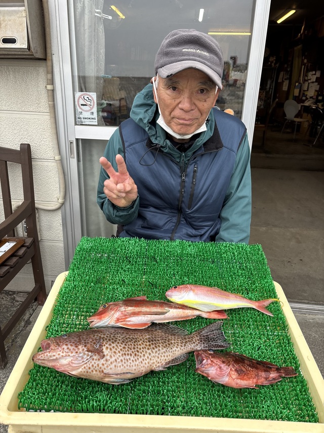 0.30~0.75kg 0~2匹 アジ 14~28cm 4~10匹 本日もご乗船ありがとうございました。 アジは、小ぶりサイズでしたが、ポツポツ。 色々とまじりました! イナダ、イシダイ、カイワリ、オオモンハタ、イトヨリ、ホウボウ、カサゴ、イサキ、ウルメイワシ、サバなど!