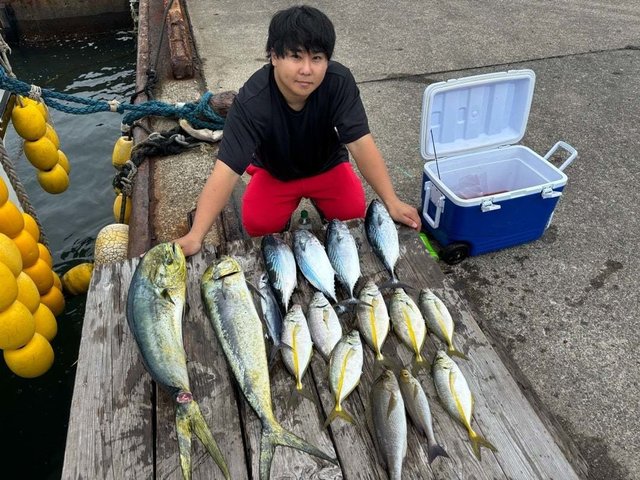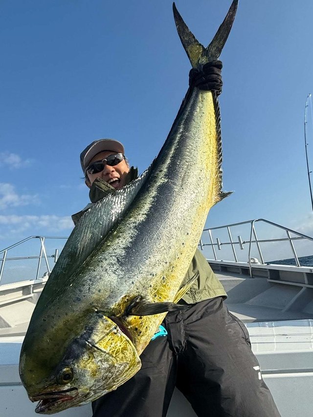 60~70cm 1~1匹 ショゴ 1.00kg 合計1匹 ホウボウ 28~40cm 1~1匹 本日もご乗船頂きありがとうございました^o^今日はショートルアー1便で出船しました。お2人様の貸し切りでした(^^)シイラ、サバフグ等のアタリ多いが掛かり悪い感じかな?シイラは狙えば凄い釣れそうでしたね!ボトムもホウボウが釣れ出してきたかな、ワームならもっと釣れる感じかな?イナダ、ショゴ狙いましたが顔見ただけでした。釣果は微妙な感じでしたが、楽しかったと言われたので良かったです♪またお越し下さい☆日替わりですがホームページのカレンダーをご覧になってご予約して下さい。チャレンジャーお待ちしてます。