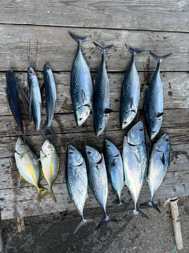 クロムツ アジ サバ クロシビカマス メダイ サンパク マハタ ショゴ アカヤガラ ヒラメ 黒むつは2匹?(船酔いしてしまったようです。涙)〜トップ20匹オーバー!(^。^)!他にアジ、サバ、クロシビカマス、メダイ、他の魚多数などと今日もナウナウ〜!(笑) 後半のエサ釣りは今日も良型カマス混じりでコアジが入れ食いに(^。^)! 泳がせ五目、ルアーは短時間でしたが良型マハタ、サンパク、カンパチ(ショゴ)、アカヤガラ、良型含むシイラ、良型含むヒラメなど。ヒラメは3名様同時ヒットなども!(アッシ、タモ入れ失敗してごめんなさい涙) 本日はご乗船ありがとうございました。またよろしくお願いします。 午後船はルアーへ。 ほな。