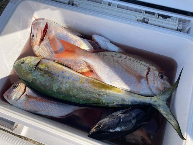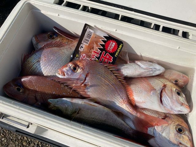 本日もご乗船頂きありがとうございました^o^今日はLT五目で出船しました。朝からタイのオジさんヘダイ、マダイとすぐに釣れ今日は良いかなと思いましたが甘くはなかったですね!その後はベイト反応入ってきて、ルアーのお客様はペンペンシイラ祭りエサの方はサハフグの猛攻とアタリいっぱい(;;)場所変えてもサバフグは多かったですね。エサの方は全然ダメでした(°▽°)ルアーの方はアタリだけはいっぱい有りましたよ!ショゴ1でしたが周りを泳いでると聞いたのでチャンスはあったのかな?またお越し下さい☆水曜日、金曜日のショートルアー募集中です。木曜日のLT五目もよろしくお願いします^o^