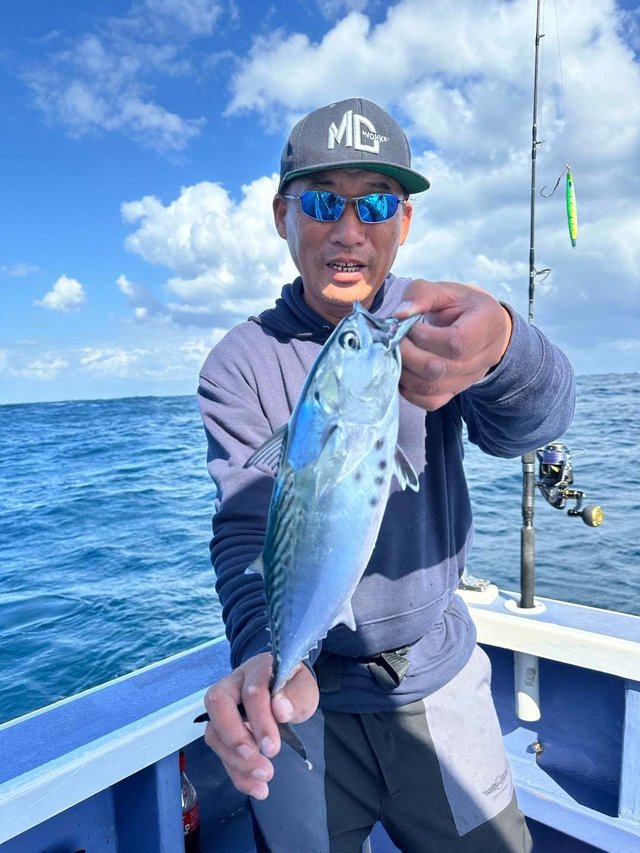 100cm ホンカツオ 47cm イトヨリ 40cm サバ 32~38cm 5~26匹 ホウボウ カイワリ アジ 22~30cm 0~6匹 チヌ ハタ 合計5匹 10月25日【かりゆし丸2号線釣果】 本日は、五目で出船しました。 天候、雨。 風、北。 潮、東に流れる。 漁場、平塚沖。 魚、 シイラ1m。 本カツオ47cm。 イトヨリ40cm。 サバ32~38cm、5~26匹。 アジ22~30cm、0~6匹。 ハタ船中5匹。 ホウボウ、カイワリ。 などが釣れました 雨風の中がんばりました。 明日は五目で出船です。