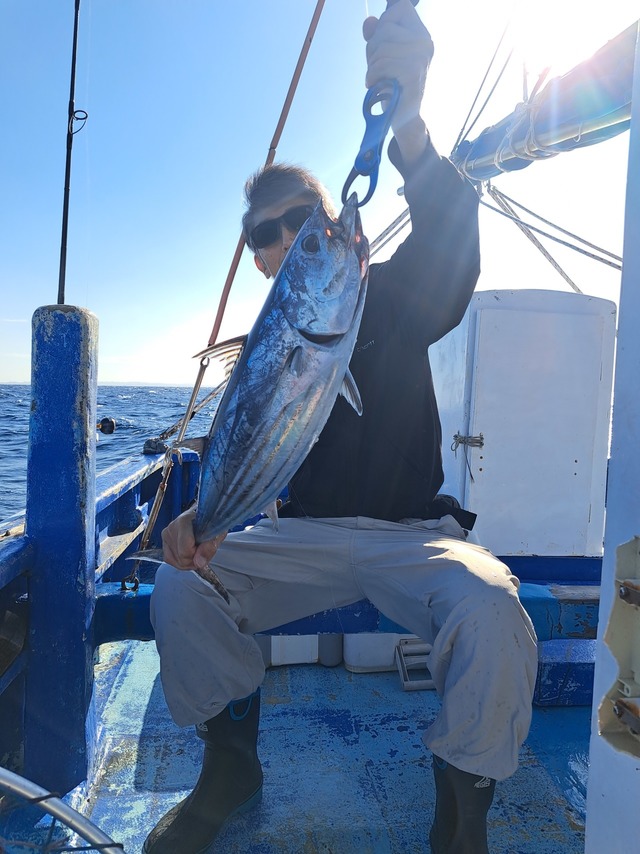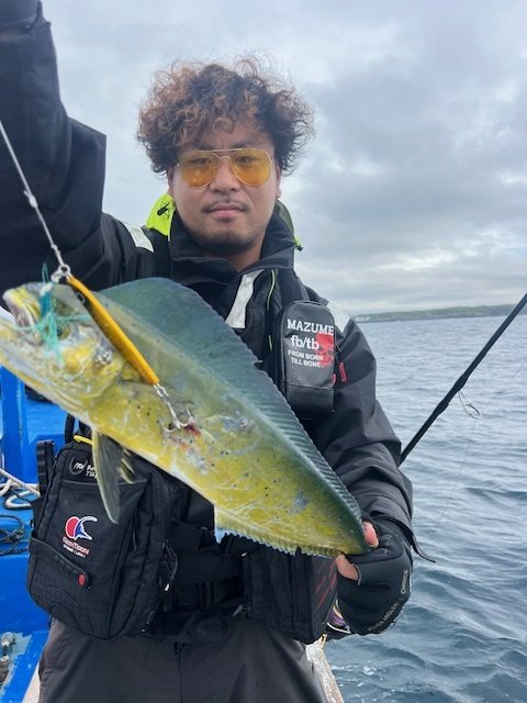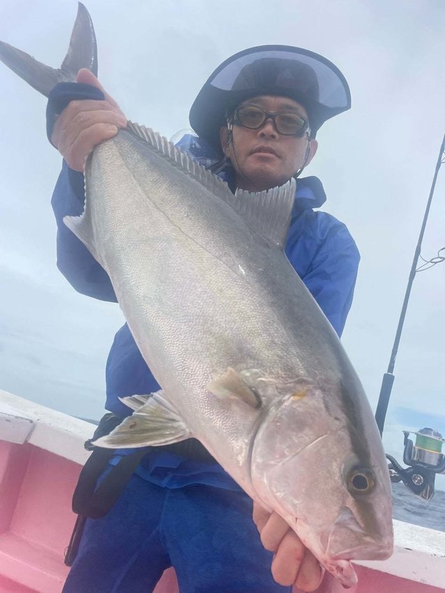 カンパチ 40cm カイワリ 竿頭5匹 アジ サバ カマス マルソウダ 10月21日、2号船、釣果。 本日は、ショートルアーで出船しました。 天候、雨のち曇り。 風、北。 潮、西に流れる。 カンパチ40㎝。 カイワリ、トップ5匹。 アジ、シイラ、サバ、カマス、 等が上がりました 本日は、冷たい陽気の中ご来店頂いたお客様に感謝です ありがとうございました