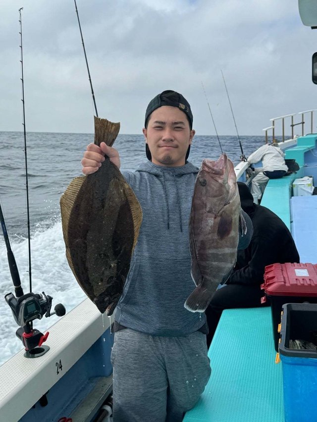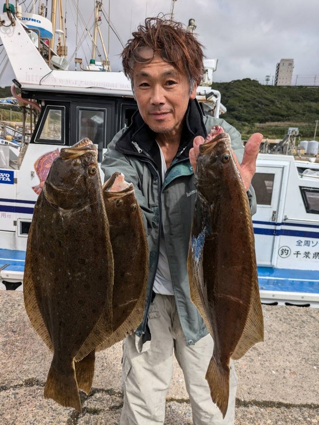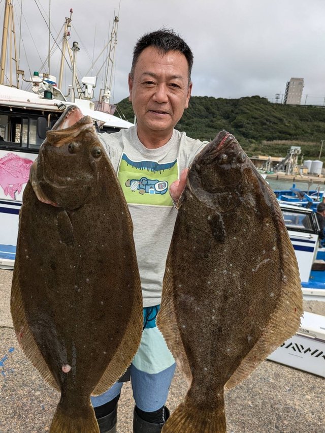 ヒラメ 0.50~4.00kg 0~3匹 マハタ キジハタ カサゴ カンパチ 今日もLTヒラメ釣りで出船しました、 時々小雨の降る天候でしたが、 風は北寄りの風で少しコチャコチャしてましたが、 気になる様なウネリも有りませんでした、 今日も貸竿のお客様数名と初めてヒラメの人が居たので、 最初はソゲ小ソゲ主体だが、 根掛りの少ない自然の根周りから、 小さくても釣れてくれて、 雰囲気を掴んで欲しいと思ったが、 アタリが無い、いやぁ、極少しのアタリは有る、 仕掛を上げるとエサが頭しかない、 孫針も無くなっているのでポイント移動、 次のポイントも同じ状況で、 同じ様な状況で釣れたのはサバフグ、 根掛りの少ないポイント諦めて、 根掛りのリスクを覚悟したポイントで、 やっと型が出た、極たまにだが1㎏前後、 フグの被害も無かったので、 少しシツコク粘ったら4㎏大型ヒラメが釣れた、 その後アタリが出なく成ったのでまた移動、 漁礁を転々と周って、たまにマハタやカサゴでした。