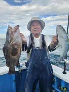クロムツ スミヤキ アジ サバ マダイ 最大1.50kg 竿頭4匹 イサキ 竿頭20匹 ウマヅラハギ 今日も黒ムツから入って入れ食い!最高5点かけ、ダブルはたくさんありました。余裕で美味しい高級魚狙い、こちらも多点掛け入れ食いでした。他スミヤキ・アジ・さば。前半でジャンボクーラーいっぱいです。後半はマダイの気配あって、小ダイ~1.5㎏程度、トップ4匹。イサキは交じりですがどこに行ってもよく釣れました。トップは20匹超え!他シイラ・ウマヅラハギ等。