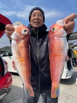 アマダイ 25~36cm 1~3匹 イトヨリ オニカサゴ ヒメコダイ アラ 1日渋く難しかったです、アマダイ1~3匹、他にイトヨリ、オニカサゴ、キダイ、ヒメコダイ、アラ