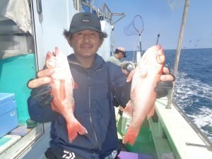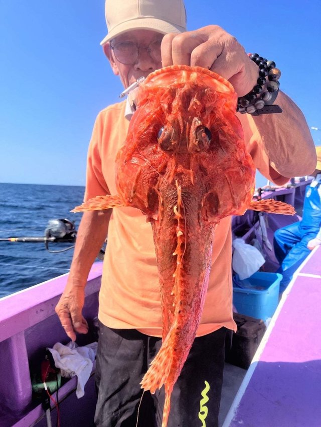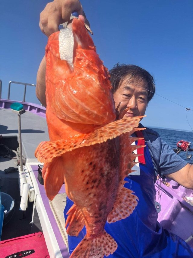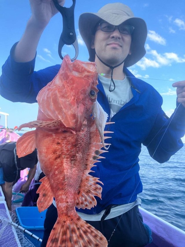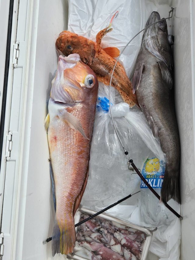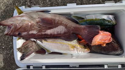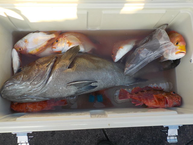 (オオクチイシナギ)0~1匹 オニカサゴ 最大1.60kg 0~1匹 カンコ 最大3.90kg 0~5匹 ユメカサゴ アヤメカサゴ チカメキントキ マハタ オキメバル メダイ サバ 大物狙うも、他魚の大物でした。 明日も、頑張って大物狙いましょう。