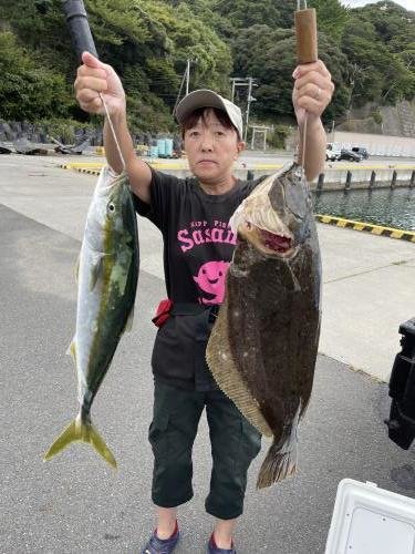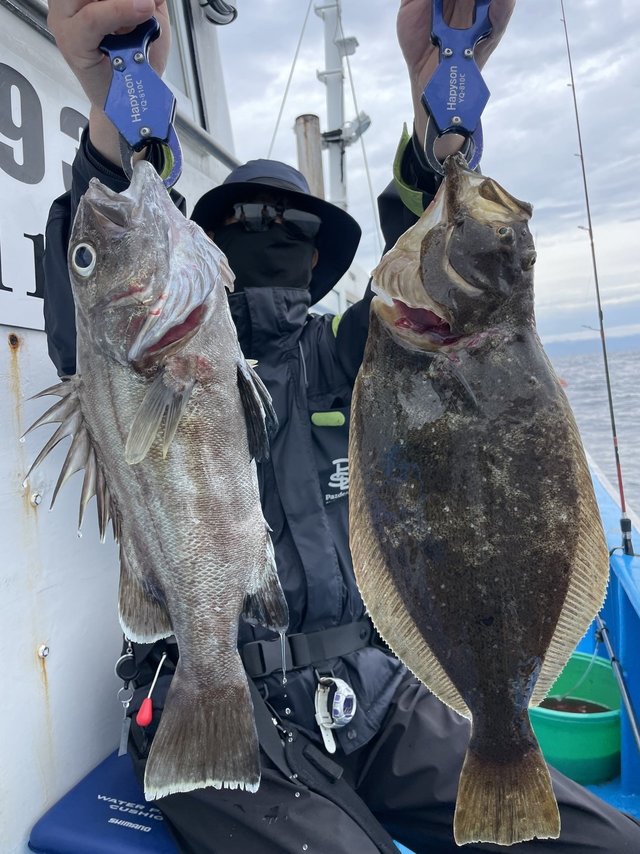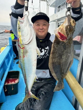 (オオクチイシナギ)ヒラメ イナダ ソイ スロージギングで出船しました。ヒラメ、イシナギ、イナダ、ソイなど底物メンイで釣れました。 次回も期待しましょう 。