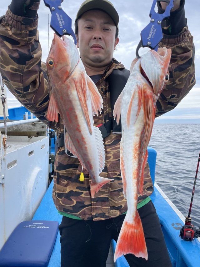 (オオクチイシナギ)最小5.40kg 0~3匹 アラ 最大2.00kg 0~1匹 メダイ 最大4.20kg 0~2匹 オキメバル アヤメカサゴ カンコ ムシガレイ ホウボウ ユメカサゴ サバ どのポイントも、イシナギが住み着いて居て苦戦! 本日は、胴突き仕掛けの方が良かった様でした。(その日によりますが…)