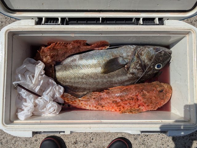 (オオクチイシナギ)ウッカリカサゴ オキメバル マゾイ イシナギなどが釣れました。