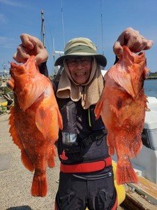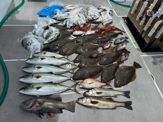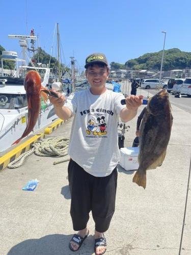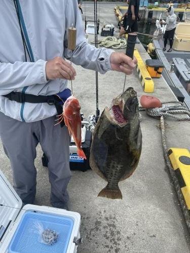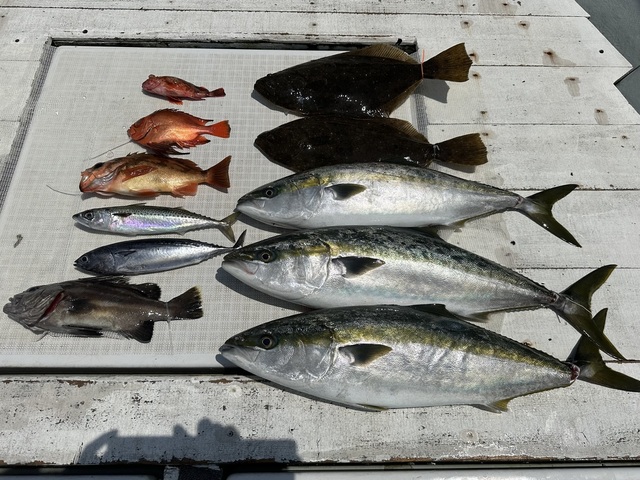 (オオクチイシナギ)アジ イワシ カサゴ メバル ソイ 根魚五目船 アジ・イワシ混じり30~60尾。 水深40m辺りを攻めてきました。 イシナギ・カサゴ・メバル・ソイなど掛りました。 ソイの掛りが良かったですね。 潮が澄んできたのでこれからが楽しみです。 今後はマゴチ船(午前のみ)も受け付けてます。 是非遊びに来てくださいね~。 座席は予約の際に伺います。 早い順になるのでご期待に添えない場合も御座います。 ご了承下さいね。 詳しくは電話確認でお願い致します。 貸し竿、投入機(数に限りが有ります) レンタルの方は予約の際に必ず申し出てください。 ご用意出来ない場合があります。 ※必ずライフジャケットの着用をお願いします。 無い方は必ず申し出て下さいね。 《日程》 7月6日(日)根魚五目船(空き有り) 11日(金)根魚五目船(空き多数) 12日(土)根魚五目船(空き多数) 13日(日)根魚五目船(空き多数) 15日~19日までお休みです。 20日(日)仕立て船