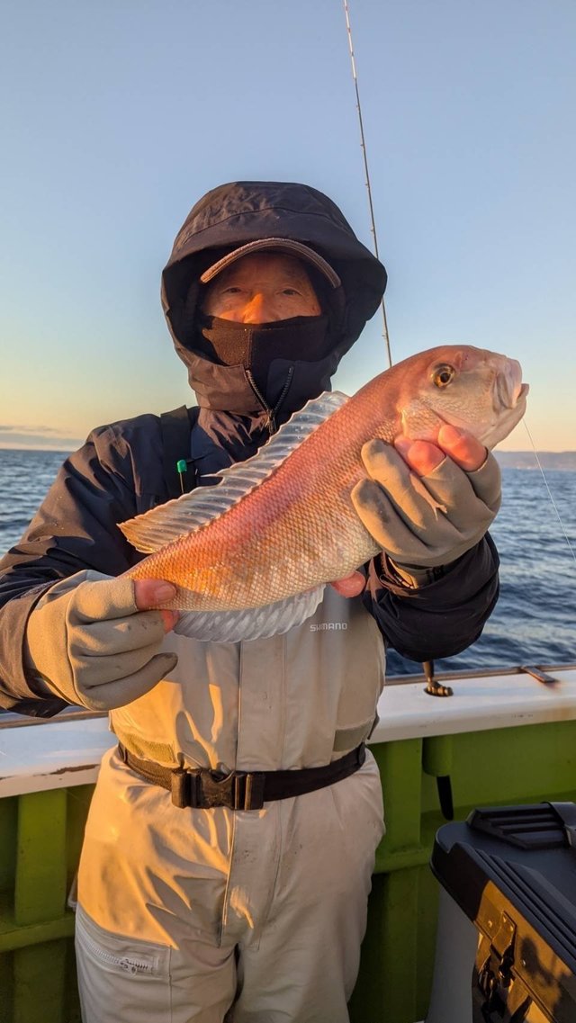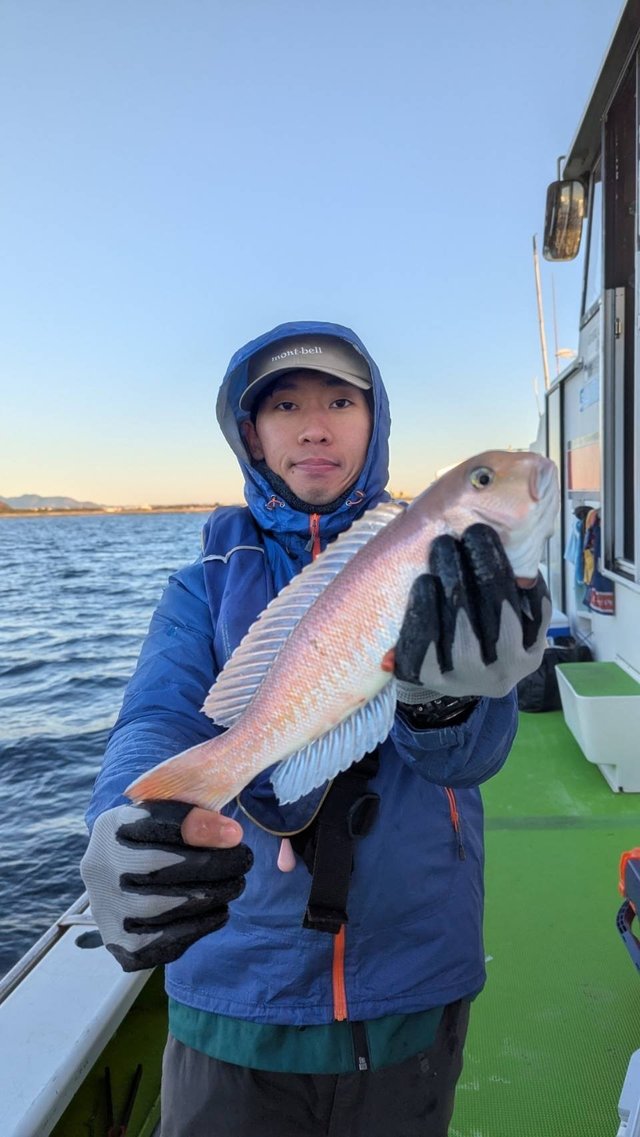 (アカアマダイ)23~36cm 2~8匹 シロアマダイ 25~28cm 0~1匹 イトヨリ 20~40cm 0~4匹 オニカサゴ 0.30~0.70kg 0~1匹 明けましておめでとうございます! 今年もよろしくお願いいたします! 今日はアマダイに出船しました! 朝一シロアマダイ狙いで小型2匹釣れてバレも。アマダイ狙いに変更して深場で流しなおすたびに1.2匹釣れる感じで何とか皆さん釣れて赤白交じりで2~8匹でした! イトヨリ0~4匹!オニカサゴ2匹! 交じりで楽しめました! 1月土日平日ガラガラに空きあります!よろしくお願いいたします!