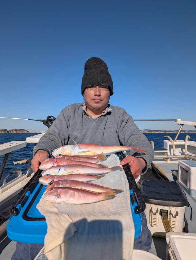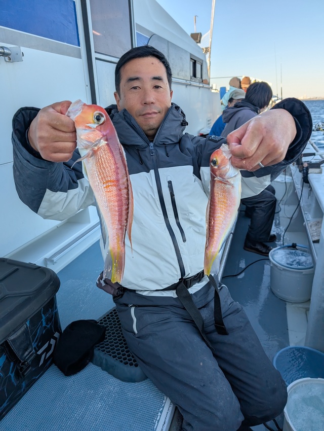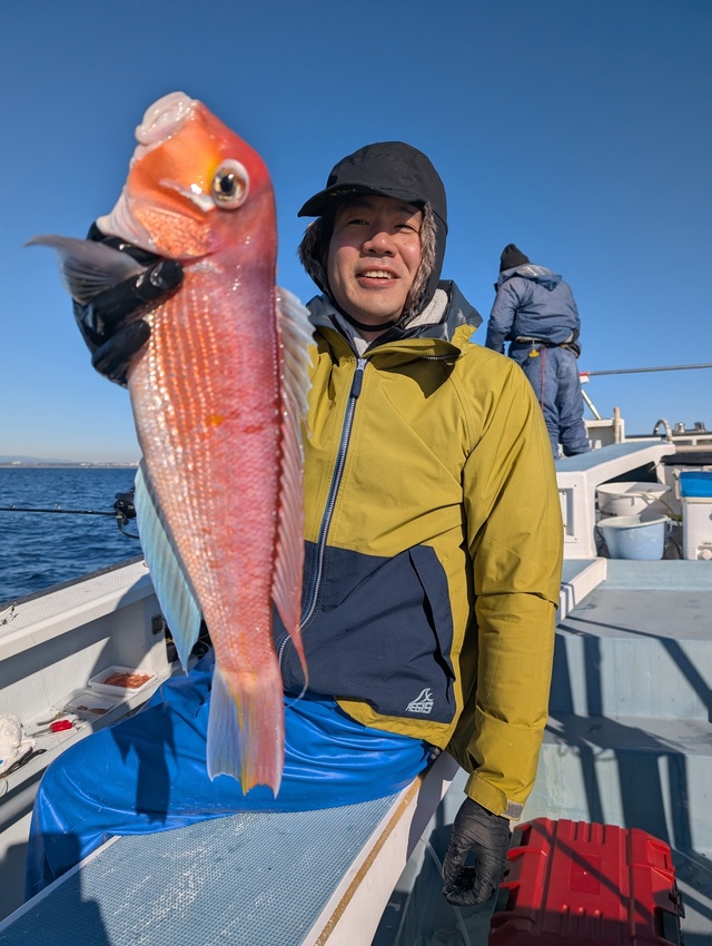 (アカアマダイ)20~45cm 0~8匹 本日ご乗船の皆様寒い中お疲れ様でした ※アマダイ五目船にて出船でした アタリ少ないも、良型アマダイ45cm・42cmと浮上し、シロアマダイ交じりで・イトヨリ・ハナダイ・オニカサゴ・レンコダイ・ホウボウ・ヒメコダイなども交じりました ★明日、明後日は※キンメ・ムツ五目船にて出船となります 宜しくお願いします