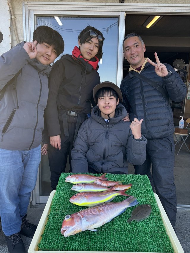 (アカアマダイ)20~36cm 0~3匹 マダイ 1.50kg 合計1匹 ヘダイ 20~28cm 0~3匹 ホウボウ 24~30cm 0~3匹 シロアマダイ 24~32cm 0~2匹 イトヨリダイ 20~35cm 0~4匹 本日もご乗船頂きありがとうございました^o^今日は今年最後のLT五目で出船しました。今日は昨日と違って暖かく海も凪でしたがサカナ君は活性悪くイマイチでした(゚∀゚)小アジの反応もみれるが全然釣れず、サバの反応もすぐに抜け顔みるだけ(;;)ハナダイの子供が良く掛かるくらいで、何とかマダイとヘダイをgetしましたがイマイチで11時からアマダイ狙いましたがコチラもイマイチで顔みた程度でした!すみません。またお越し下さい☆帰り際に大ちゃんにお酒貰いました、大ちゃんありがとうございました♪来年リベンジしましょう!明日ガラガラなので宜しければお越し下さい。