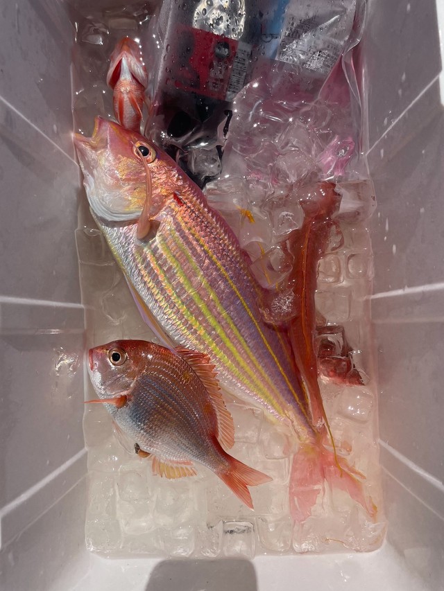 0~1匹 アマダイ 20~40cm 2~7匹 アマダイ船。 今日はとりあえず皆さんアマダイ顔見れました。 小型主体で中型交じり。 たまには顔出す感じ。 アマダイ他にイトヨリ、カサゴ、ホウボウ、サワラ、サバ。
