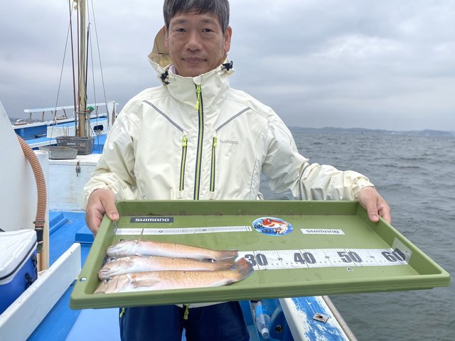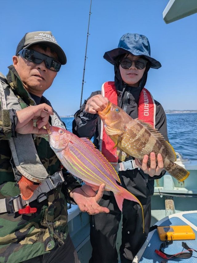 20~41cm 0~1匹 イサキ 15~23cm 5~20匹 タカベ 15~18cm 8~16匹 イトヨリ カサゴ LT五目船。本日は仕立て船の釣果です。今日はコマセ釣りとアマダイのリレーでした。前半はコマセ釣りでイサキがタカベ混じりで好調でした。後半アマダイ釣りでは水色が濁り、むずかしい状況でしたが、最大のシロアマダイをゲットできました。本日はありがとうございました。
