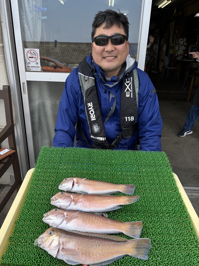 アマダイ 25~38cm 1~2匹 イトヨリ アジ 18号船アマダイです。アマダイで出船しました〜。 本日アマダイポツリポツリ 拾い釣りの様な感じでした。 春の潮が入ってき 潮が濁ってきました。 アマダイはそろそろラストスパートですかね。 明日はタイ船で出船予定です。 本日も一日ご乗船ありがとうございました。
