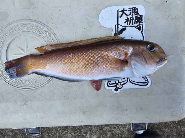 アマダイ 23~43cm 1~10匹 アカボラ イトヨリ 18号船アマダイです。 本日アマダイ行って参りました〜。 本日潮澄んでおり、 潮も朝から流れ、 いちにちポツポツ当たりました。 派手な喰いはなかったが 40upもあがりましたよ〜。 ツヌケの方もいて 皆さん平均して4.5匹持っていました。 本日も一日ご乗船ありがとうございます。