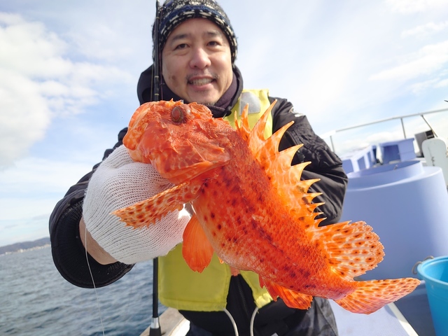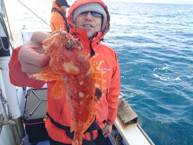 35cm 合計1匹 アマダイ 28~36cm 0~2匹 オニカサゴ 0.30~0.90kg 1~3匹 マハタ 0.50kg 合計1匹 今日はアマダイ~オニカサゴのリレーに出船しました!朝のうちシロアマダイが釣れてアマダイは何とか釣れて0~2匹!外道の当たりが少なく早めにオニカサゴに変更し良い感じの流れですぐに釣れて流しっぱなしでたま~に当たり流しなおすたびにたま~に釣れて皆さん釣れて1~3匹!マハタ、カンコ、アヤメカサゴ交じり楽しめました(笑) 今年はご乗船ありがとうございました!また来年もよろしくお願いいたします? 1月土日平日空きありますのでよろしくお願いいたします!