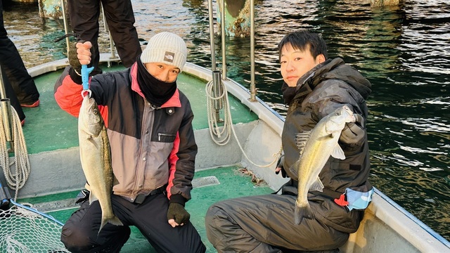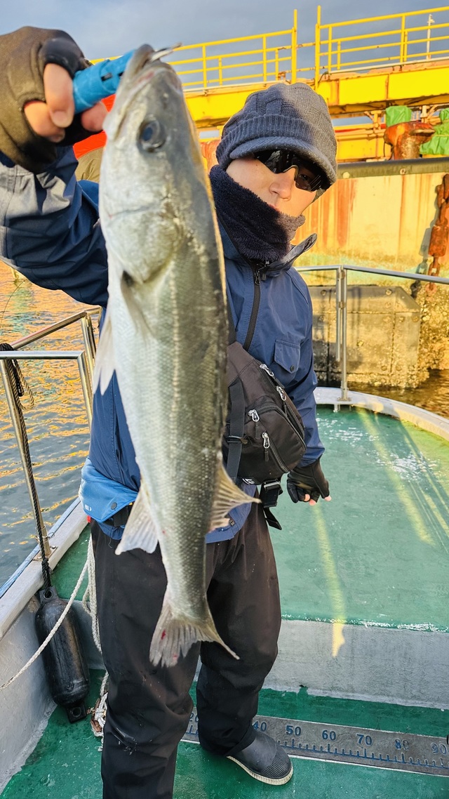 (スズキ)40~73cm 合計7匹 マアジ 15~20cm 合計30匹 アジ、シーバス狙い。初めてのご乗船ありがとうございます。 フルでレンタルの皆様、ほとんどの方が釣り初めてだったのでリールの使い方からレクチャーさせていただきました。 まずはアジを探してみると、小ぶりではありますが、時々鈴なりでヒット! コマセ無しのショットガンアジングはルアー釣りの要素もあって面白いのですがちょっと難しい日もあります。でも皆様飲み込み早く30匹くらいをあっという間に釣り短時間で深場のシーバス探索へ。 シーバスの縦の釣りは反応がもう一つで、斜めに引いていただいてた方によくヒットしました。50cm弱くらいまで。お土産に1匹だけキープ。たくさんのリリースありがとうございます。 ラストは1発サイズ狙いで浅場のミノーキャスティングにチャレンジしてみることにしました。 開始間も無く73cmの良型ヒット! これは記念にキープ。 さぁもう1本狙いましょう!と言いたいかったのですが、もうすっかり満足しました!!とのことであっさりと大漁にて帰港となりました^_^ 海は大変穏やかでしたけど気温低く寒かったですね。レンタルタックル丁寧に扱ってくださり誠にありがとうございました。 ぜひまたのご乗船をお待ちしています。