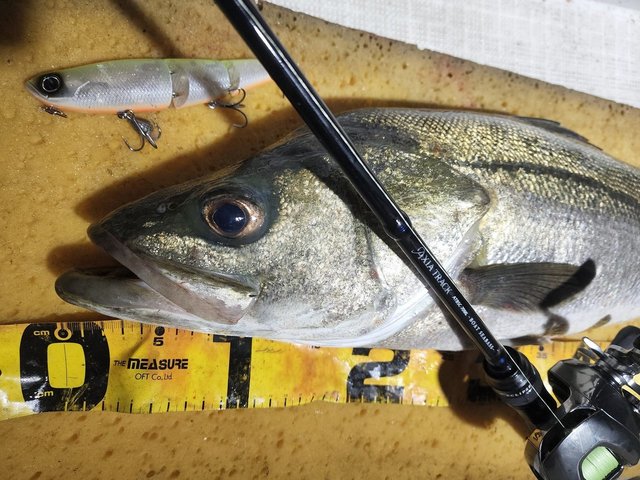 (スズキ)最大72cm 今朝はチャーターで出船。 朝一からビッグベイト・トップ中心にやりますが今朝もシーバス薄目でした。 色々と廻りましたが良いとこなしでした。 最大72cmまで