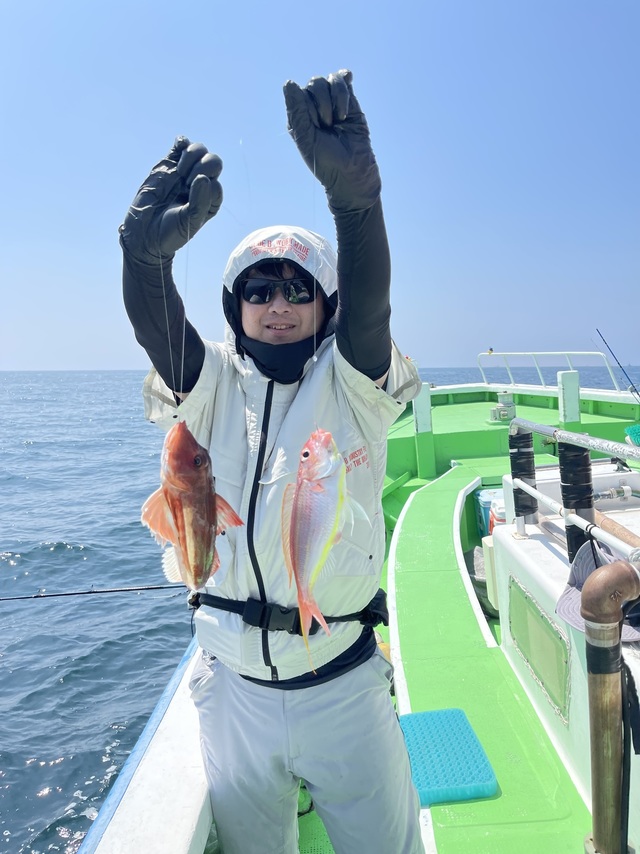 シロアマダイ 36cm 合計1匹 マダイ 2.30kg ソコイトヨリ ホウボウ 今日も2名様いらして頂き出船できました! イトヨリなどのゲストが飽きない程度にアタリ出てくれてましたが、本命はなかなか難しく…なんとか中型サイズの顔は見れました。 中盤にコレは!!!!!!ってビッグヒットで上がってきたのはまさかの良型マダイでした(^_^;)最高のお土産になってこれはこれで◎