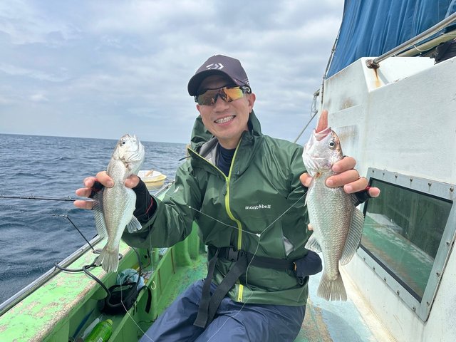 (イトヨリダイ)32~35cm 0~2匹 アマダイ 28~35cm 0~3匹 ウィリー&アマダイ五目シロアマダイ28~35㎝0~3枚イトヨリ32~35㎝0~2枚ソーダ35~40㎝2~9匹カイワリアオハタサバEtc ターゲットのシロアマダイイトヨリアオハタ始めゲストもソーダサバカイワリとビギナーの皆さんもお土産バッチリで楽しんで貰えて良かったです! PS明日は礼祭で休船しますm(__)m