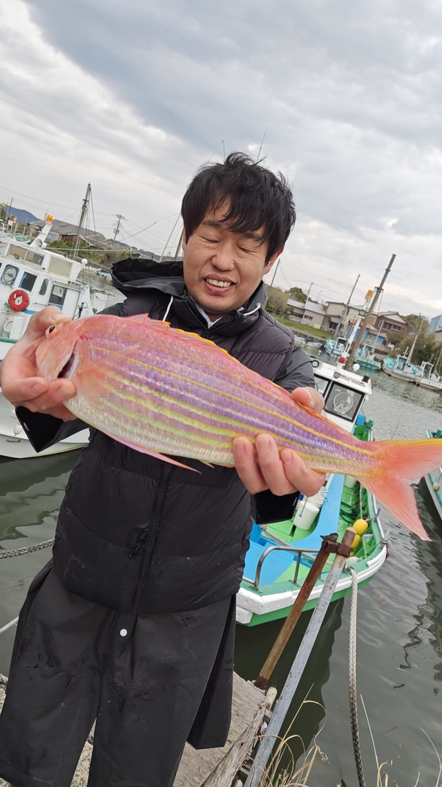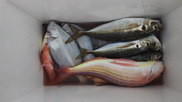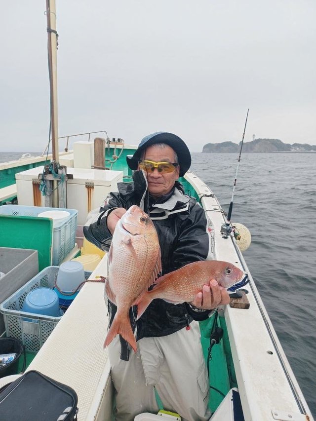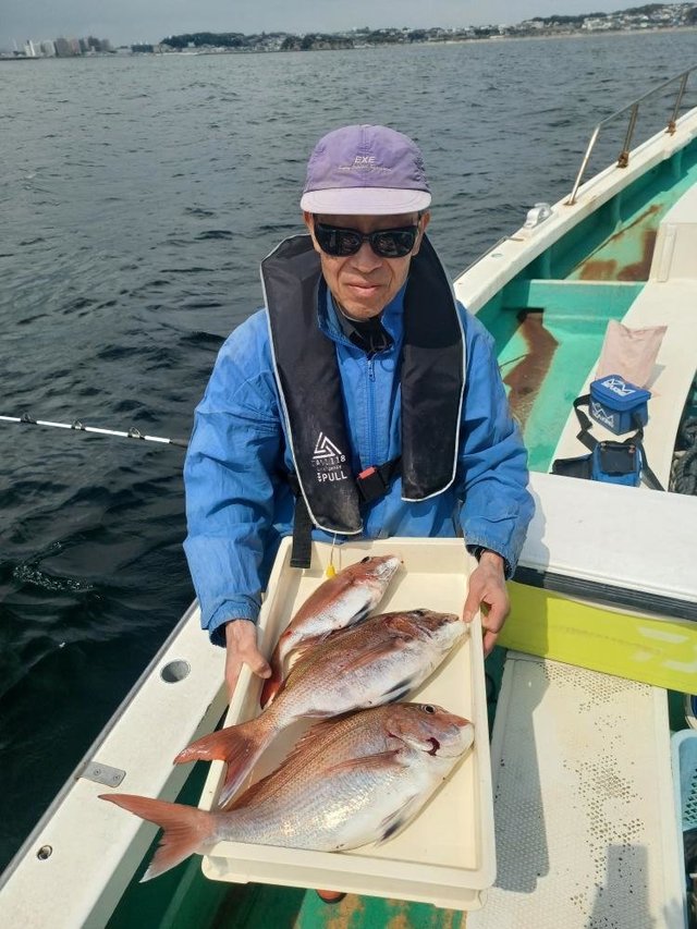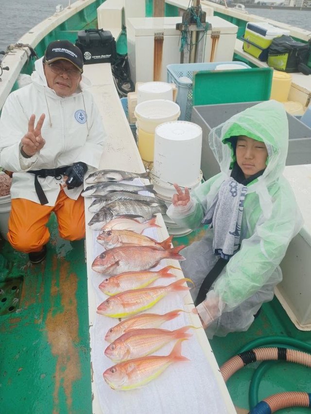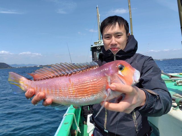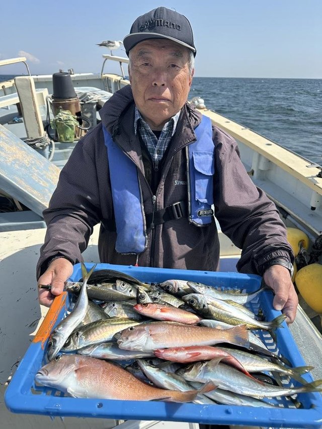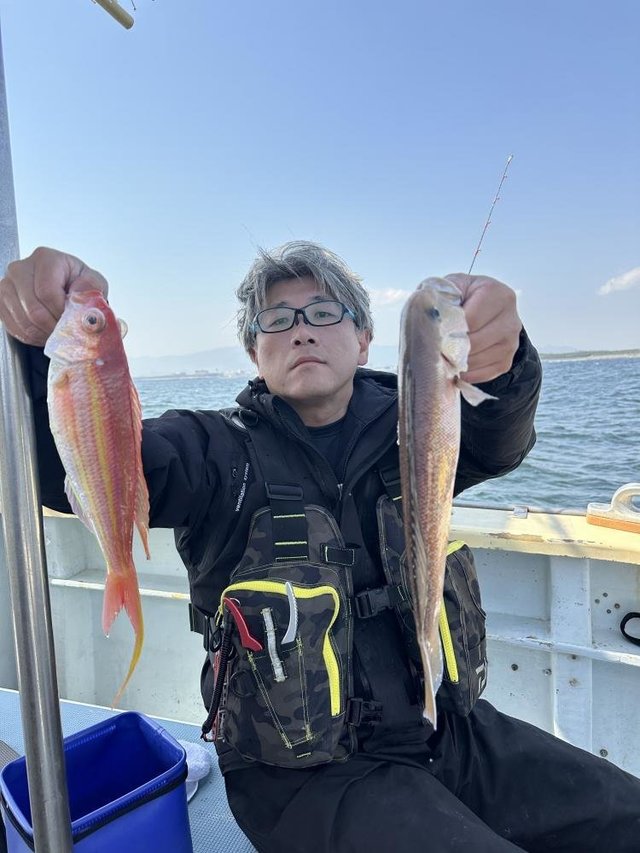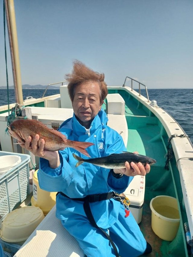 (イトヨリダイ)マダイ ハナダイ 0.30~0.60kg 0~4匹 アマダイ 20~38cm 0~4匹 イナダ クロダイ ソーダガツオ ヒメコダイ ムシガレイ カサゴ ホウボウ 今日はタイ・アマダイ五目乗合船で出船しました! 朝、海悪く難しい中、マダイ、ハナダイ、クロダイぽつぽつ釣れて 7名中6名はタイ顔見れました! その後もイナダ、ソーダガツオ、ホウボウ釣れたりしてる中マダイ、ハナダイ釣れたりして、フグが多くなってきたタイミングで 沖へアマダイ狙いに。 アマダイ、着いてすぐに何名か釣れて、その後もぽつぽつ良い感じでした!サイズもカタ揃いで良かったですね!アマダイも酔ってしまった方お一人様顔は見れませんでしたが、次回リベンジですね! 本日ご乗船の皆様、ありがとうございました! またのご乗船をお待ちしております。