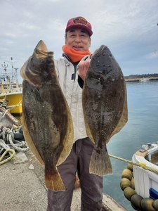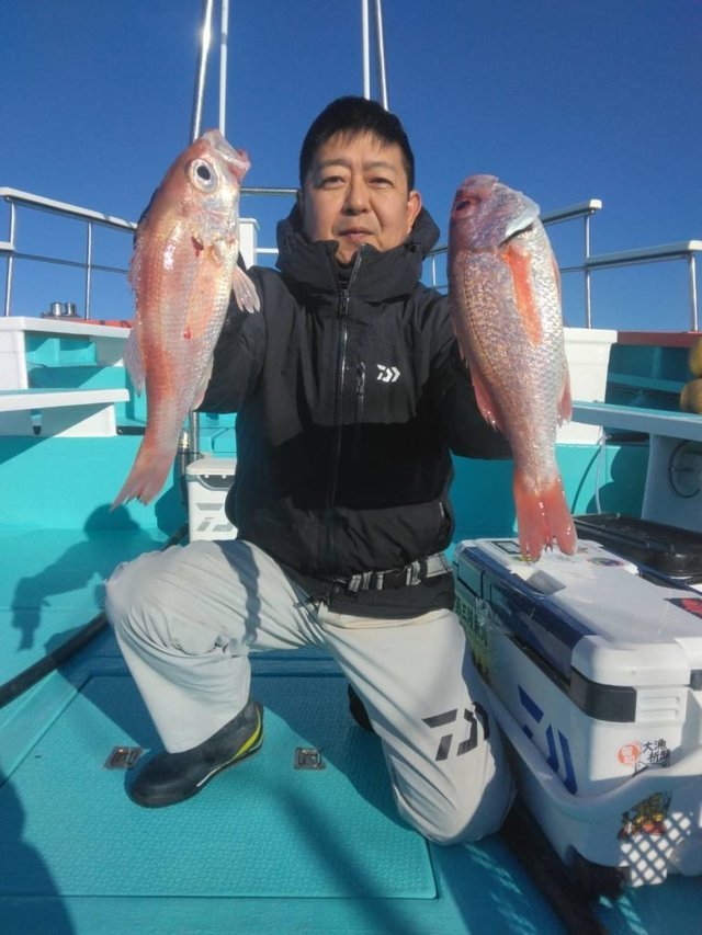 20~28cm 0~3匹 明日はヒラメとイサキ五目又はマダイ 午後マダイで出船予定です!(アラ0~2匹0.8~1.35キロ、カサゴ混) ヒラメのびイマイチでした。ゲストはどちらも良型でした。 アカムツ、サバ多く代苦戦…(;∀;) またアカムツも出船しますのでリクエストして下さい。 変更、お知らせあればまたこちらで載せます。 人数集まれば出船致します。 人数が集まらないと出船できません。 人数と釣果次第で変更します。 天候の変わりやすい季節です、中止等お知らせで載せますが、遅い時間になる時もありますのでご心配の方は電話でお問い合わせ下さい。 マダコ募集しますのでご希望日リクエスト下さいね~。 マダコですが、オモリ60~100号しかけエギ3.5~4号道糸PE3~4号リーダー700前後 真ダコファン集まれ~! イサキが釣れていますので是非(ノ・∀・)ノ エサの用意があるので、前日までにご予約ください。 今後はヒラメ、マダコ、アマダイ、イサキハナダイ五目(コマセ)、テンヤマダイ、沖根魚(アラ鬼カサゴ)、アカムツ 午後マダイで出船予定です。 初めての方や慣れていない方は是非、船長の見える場所へお座り下さい! 予約時すぐに電話に出れない時がありますが折り返します! 千葉東金横芝ICから匝瑳市(旭市隣)まで高速道路が延長になりました。最終、匝瑳ICで降りて右折、海沿いで是非いらっしゃって下さい。早くなりますよ~! 午前船のお客様はお弁当付いてます(ノ・∀・)ノ 集合時間 沖根魚、アカムツ、アマダイ3時 ヒラメ3時45分 マダコ、マダイ、イサキ五目4時 午後船は12時 時間厳守でお願いいたします! もし遅れる等の場合は早急にご連絡下さい。他のお客様を待たせてしまう、出船時間も遅れてしまいます。 リクエスト、人数天候等により変更あります! テンヤは遊動式しかけで!初心者でも釣れますよ~! 初心者の方、予約時お知らせ下さい。 救命胴衣(無料)、レンタル貸竿(基本無料。有料も有)ございます。