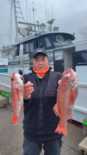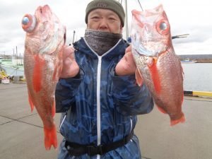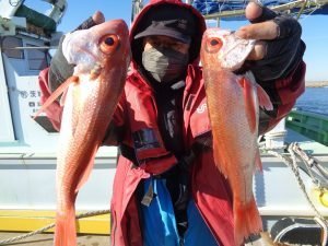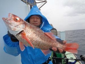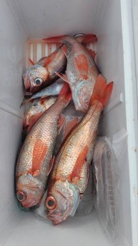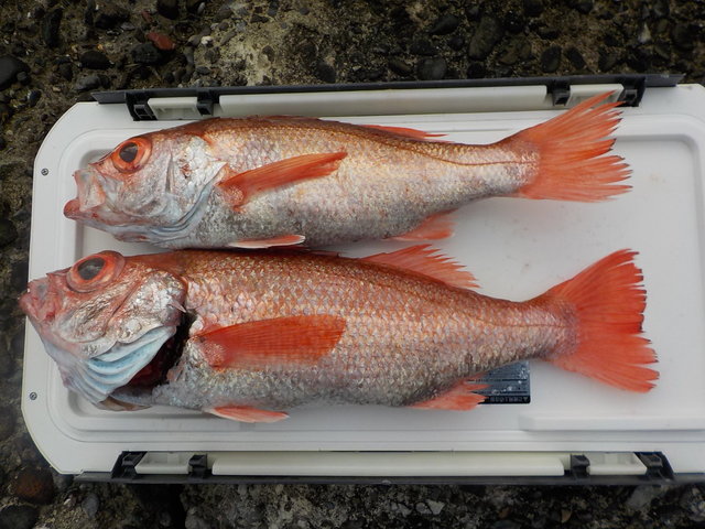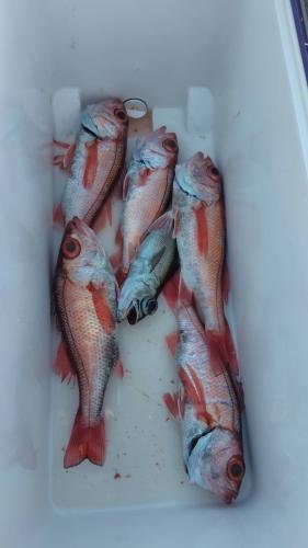 23~38cm 0~7匹 オキメバル ムシガレイ アジ メダイ アカムツ船。 海上ナギ良く、所によりサバ多く苦戦したがアカムツ食いは順調!良型も、まじる。残念ながら型見ず1名でした。