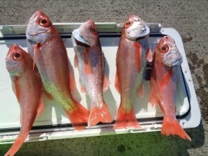 3~10匹 本日はアカムツ五目で出船しました。 良型アカムツ、3から10匹。