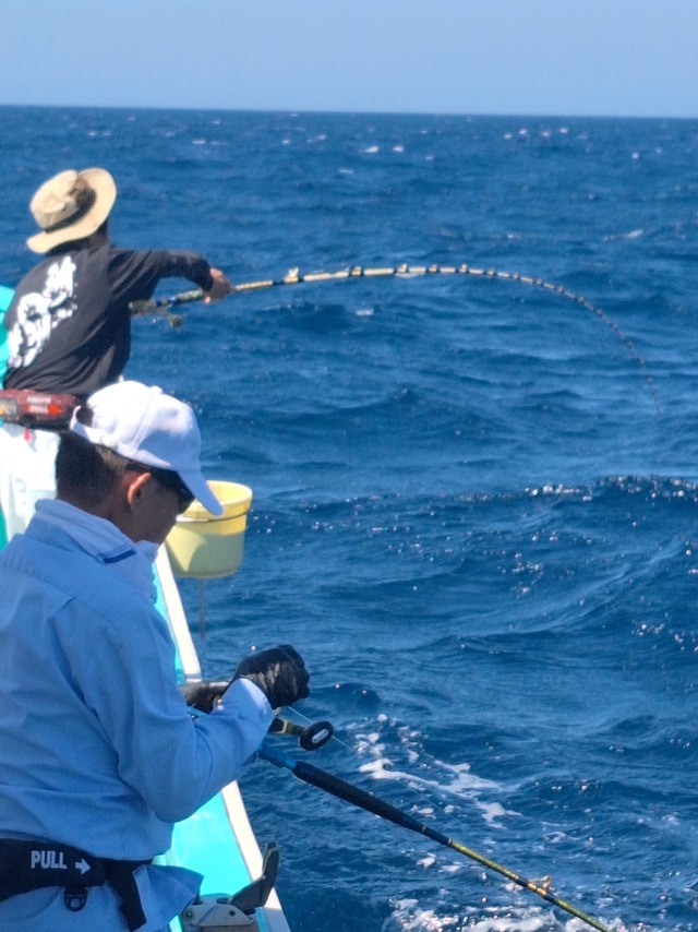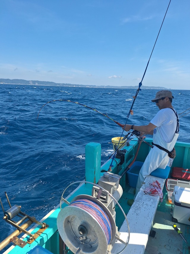 1.00~5.64kg 0~5匹 ショウサイフグ 25~40cm 0~10匹 ◆ショウサイフグ船 2隻の高低差 サイズ25~40cm0~10匹 その他マダコ、ムシガレイ 竿頭、榎本さん(女性)、 稲葉さん(小学6年生女性) ◆午前テンヤ船 1キロ代12枚、2キロ代7枚、4.13キロ、4.28キロ、5.64キロ サイズ1.0~5.64kg0~5枚 竿頭、中澤さん 外道ハナダイ、ホウボウ、トラフグ 今日のフグ船は潮の流れが早くアタリが少なく数が伸びませんでした。白子は5~9割交じりました。 午前マダイ船は朝は潮流れ良くマダイポツポツ当たりました。後半は当たり少なくなるも大鯛上がりました。バラシも有り。 ご乗船の皆さん、暑い中大変お疲れ様でした。ありがとうございました。またのお越しをお待ちしております。 明日はテンヤ真鯛午前船が出船します。フグ船はご予約が入り次第確定となります。宜しくお願い致します。