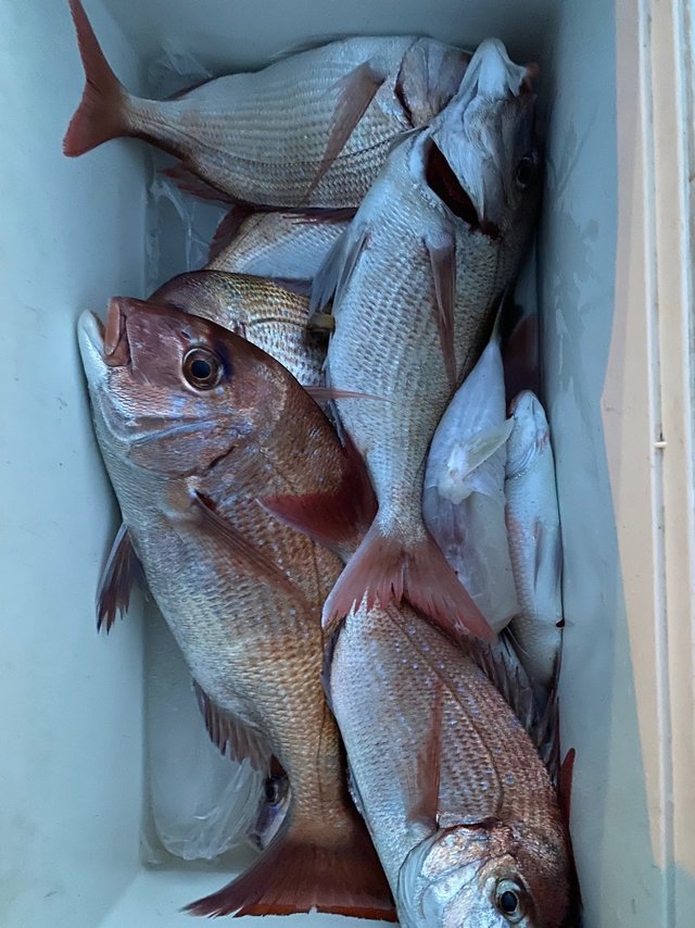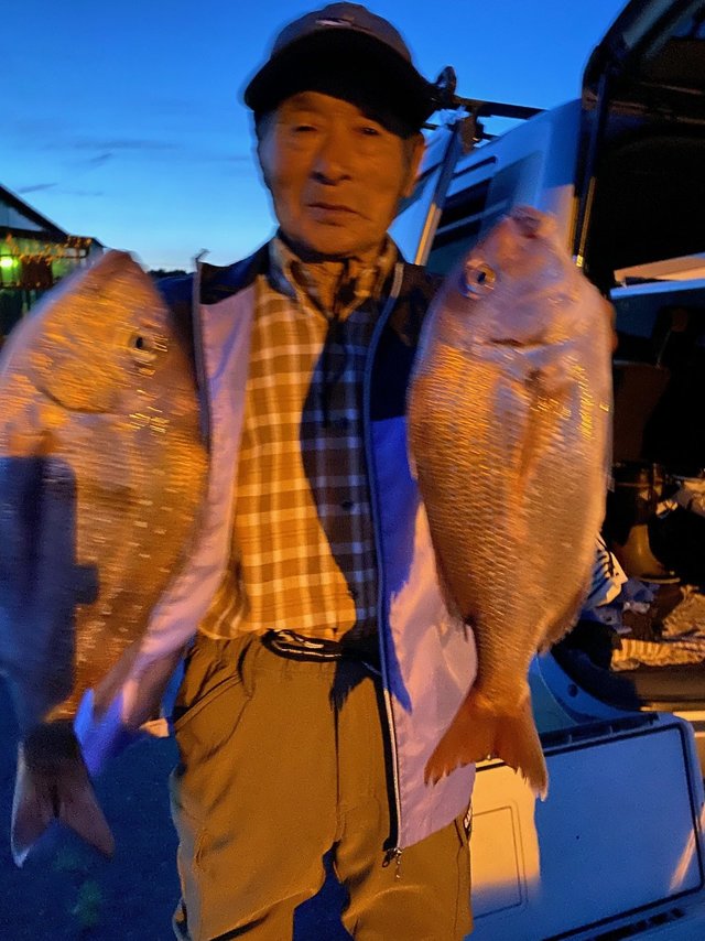 0.70~2.80kg 0~3匹 テンヤ真鯛午後船 釣果 0~3匹(竿頭栄町の川上さん91歳) サイズ 0.7~2.80kg 状況 今日は大鯛には出会えず2.80kgが最大で他には1.0kgクラスもポツポツと! 明日もテンヤ真鯛船出船予定です。