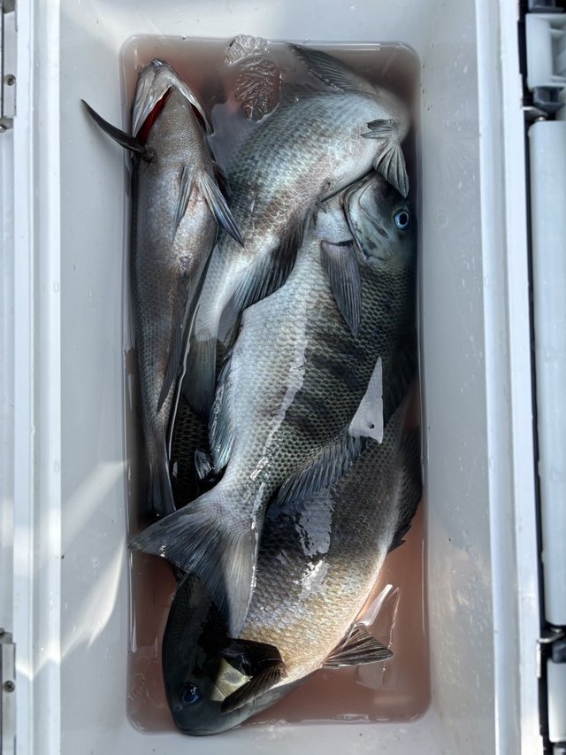 1.00~4.00kg 2~5匹 真鯛狙いで出船しました! 久しぶりの真鯛釣り朝から魚の反応もよく出てた一日でした。 メジナとクロダイとイサキが良く釣れてその間に真鯛が食いついて楽しめてました。 お客さんのクーラー皆様満タンでお帰り出来ました。 今平日狙い目です。