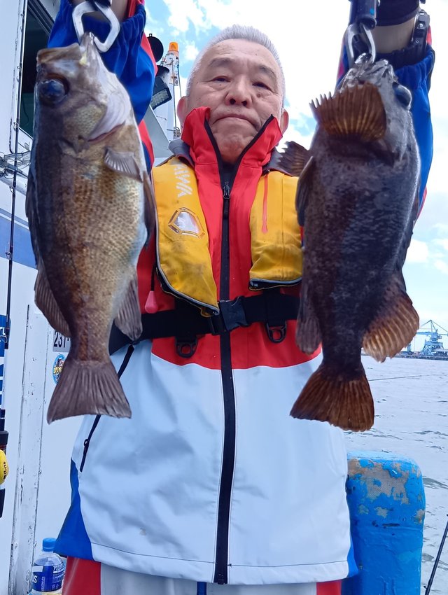0.80~2.00kg 0~1匹 クロダイ 1.00~2.00kg 0~8匹 メジナ 0.50~1.50kg 0~6匹 イサキ 20~30cm 0~2匹 大型3号で出船しました。マダイは喰い渋り顔を見た程度でした。ゲストにクロダイ、メジナ、イサキが多数交じりました。 オモリは80号 マダイ用ハリス 4~5号8m前後 幅広いハリスをご用意しておいてください。 ※コマセは船の中で割らないようお願いします。(岸壁で割るようお願いします。) ※出船時間の15分前に船を離しますので早めに乗船して下さい。