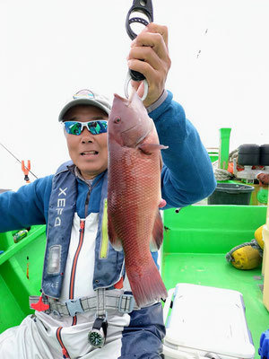 1.20~1.80kg 0~1匹 ハナダイ 0.50~0.80kg 0~1匹 ホウボウ 30~40cm 0~1匹 カナガシラ 15~20cm 0~3匹 午前テンヤ真鯛船 いつもの北のポイントから狙いましたが 今日は、潮が悪いのか 当たりが少なく、大苦戦! 真鯛は、船中3枚。 1、2キロ 1、6キロ 1、8キロ。