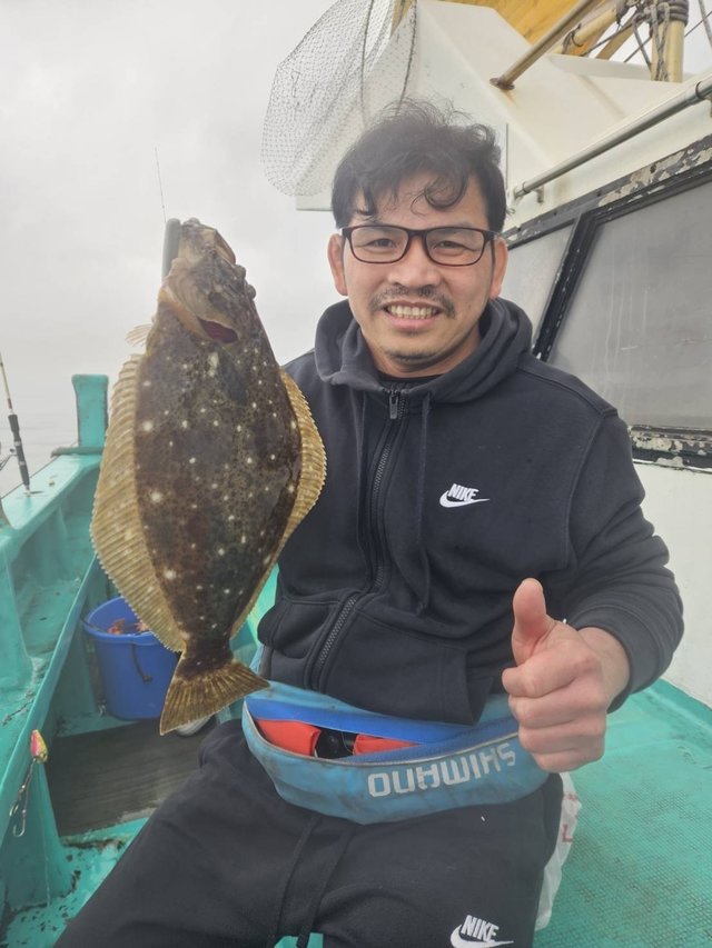 マハタ ヒラメ 1.40~5.60kg 0~2匹 午前ヒラメに出船しました。 ヒラメ0〜2枚1.4〜5.6キロ。 ゲストにマハタ、マダイ。 ポイントは45〜60m。