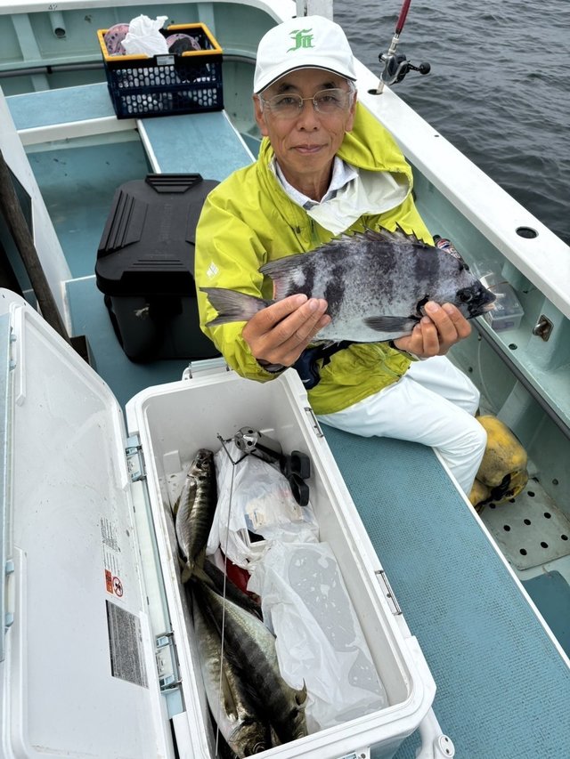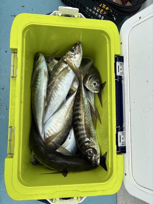 4.00kg 合計1匹 アジ 22~35cm 13~25匹 本日もご乗船ありがとうございました。 後半、良くなり、ポツポツとアタリあり、 中型、大型アジがポツポツとまじりました! 他、マダイ4キロ、クロムツ、サバまじり。