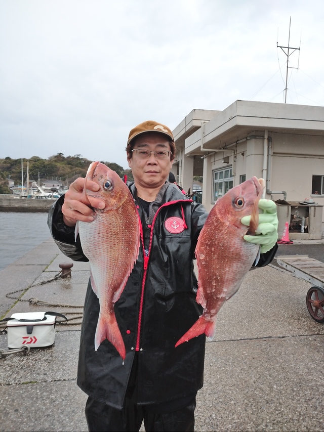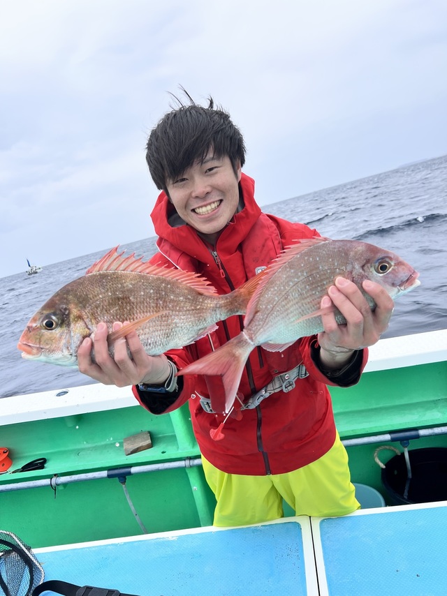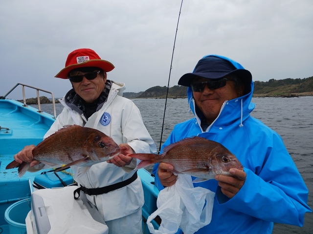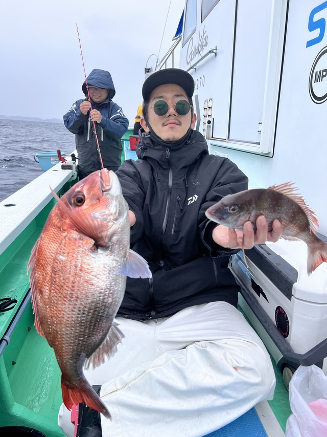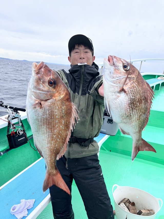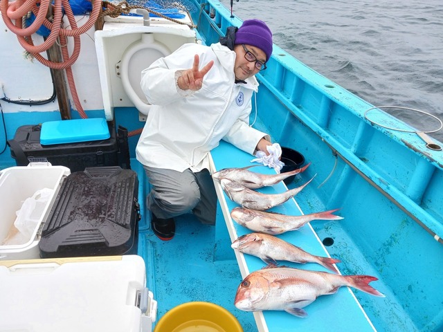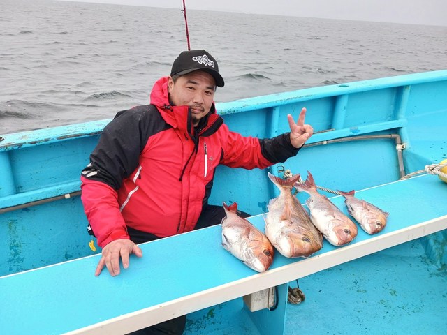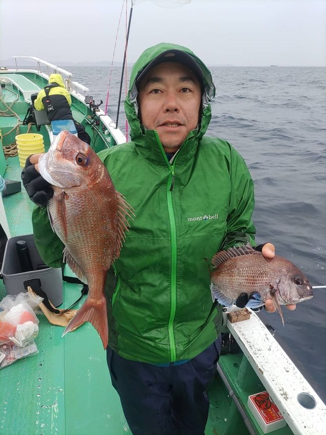 0.40~1.80kg 0~7匹 マダイ 0.30~1.00kg 1~9匹 ★★★活き海老エサでの一つテンヤマダイ釣り♪★★★ 活きエビエサは、こちらで準備しております。 エサの追加料金は頂いておりません。 (準備できない場合は冷凍エビとなります。) テンヤはご用意をお願い致します。 <マダイ船1> 一つテンヤでのマダイ釣りです。広く流すような感じでポツポツと本命やハナダイが上がり、最大は1.8kg。一発切られもあり残念…。良いサイズがまだうろついていそうですね。 外道:ハナダイ、カサゴ、アジ。 <マダイ船2> 一つテンヤでのマダイ釣りです。浪風強かった為か真鯛の活性上がらず今一つでした。それでもオデコ無く良かったです。大型らしきバラシが2回残念。次回また頑張ります。 外道:ハナダイ、カサゴ、ホウボウ。 ***キャビン内、店内はマスクの持参着用をご協力お願い致します*** <今後の予定>***集合時間まえにはお越しください。 午前船:4時00分船宿集合…マダイ船、ヒラメ船。 (土、日は、貸竿のお客様、貸竿の必要なグループ様は5分前集合でお願い致します。) 午後船:10時30分船宿集合…マダイ船。 定休日:第2火曜日(4/8) (*状況により予定が変わることもございます。前日に確認のお電話をお願い致します。) <ご予約・お問い合わせはこちらへ> 090-2155-0500(午前9:00~午後8:00まで) キャンセルにより他のお客様へご迷惑をおかけしてしまう事もありますので、キャンセルの無いようご予約をお願い致します。 <乗船名簿について> ①お名前(フルネーム)、②住所、③緊急連絡先の電話番号、④年齢、⑤性別 ①~⑤まで記入し可能であれば、持参お願い致します。
