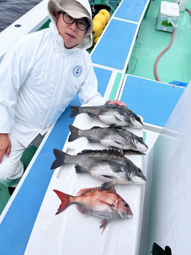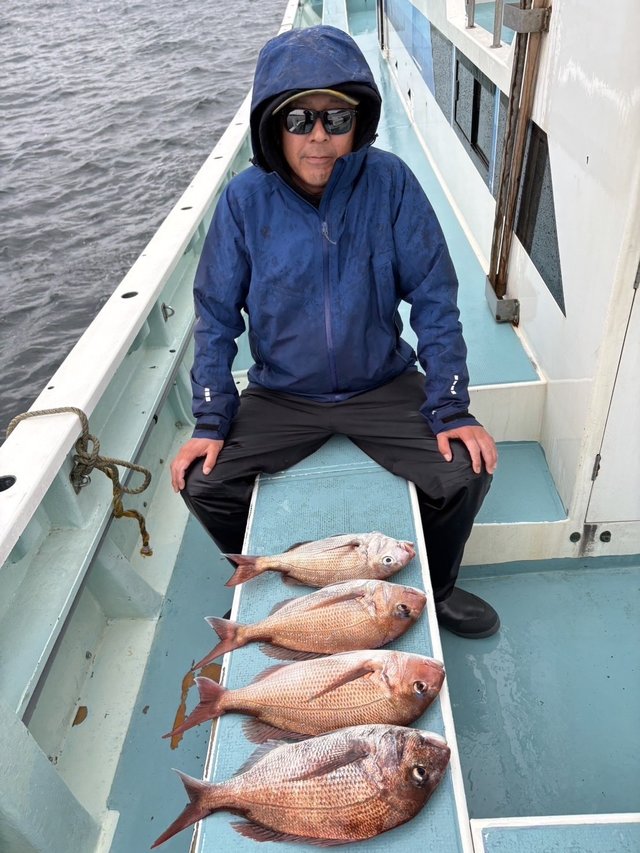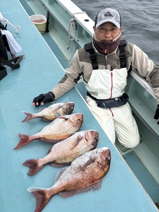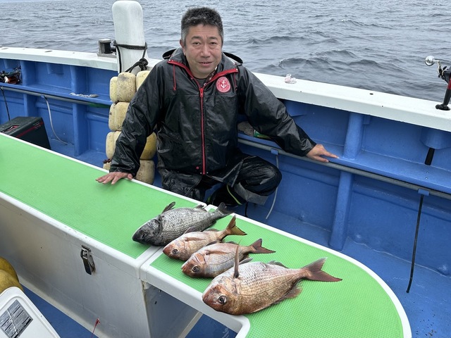 1.00~4.50kg 3~6匹 ほか、クロダイ。 今日は、1.5~2.0K中心でした。 朝から、ポツリポツリ釣れ、みなさん、平均に釣れました。 おつかれさまでした。 マダイいただき、ありがとうございました。