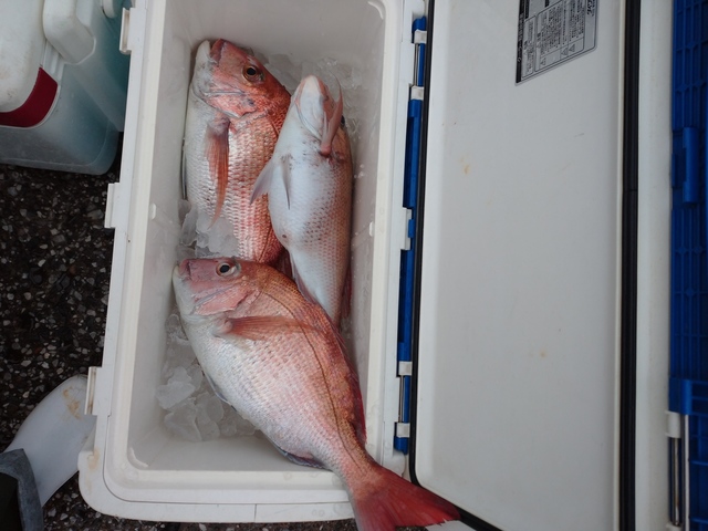 0.80~3.00kg 0~3匹 朝からマダイの顔を見れ、その後はポツリポツリと拾い釣りでした。良型マダイも揚り、トップは3枚!ゲストにクロダイが交じりました。 連日2~3隻空いてます。飛び乗りでもOKです。お待ちしてます。 平日、週末空き多数です。御予約お待ちしてます。 オモリは80号 マダイ用ハリス 4~5号8m~10m 幅広いハリスをご用意しておいてください。