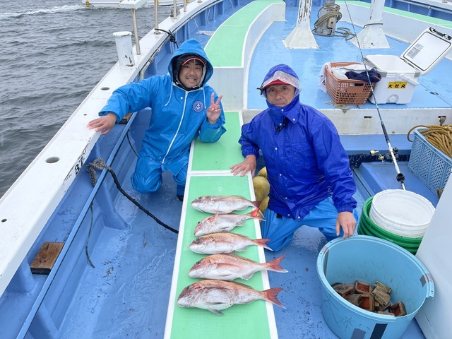 0.80~3.00kg 1~5匹 マダイ狙いで出船です。お客さん全員がマダイの顔を見ることが出来ました。
