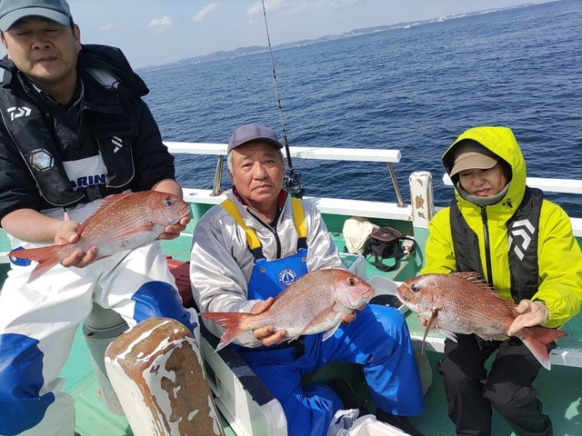0.60~4.10kg 0~2匹 クロダイ 最大2.00kg 0~3匹 イナダ ハナダイ タイ五目船。水温上昇し中盤に活発な食いがありました。 やっぱり潮次第です。 型も良く、4.1㌔&3.6㌔㌔&3.1㌔も釣れて乗っ込みダイ復活です。
