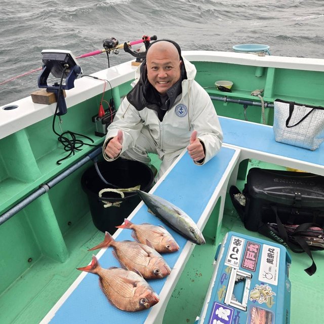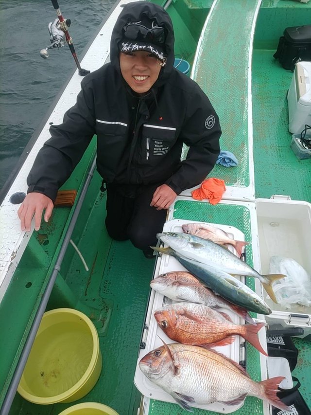 0.40~1.20kg 0~6匹 マダイ 0.60~1.00kg 0~3匹 ★★★活き海老エサでの一つテンヤマダイ釣り♪★★★ 活きエビエサは、こちらで準備しております。 エサの追加料金は頂いておりません。 (準備できない場合は冷凍エビとなります。) テンヤはご用意をお願い致します。 <午前マダイ船1> 一つテンヤでのマダイ釣りです。波風強く難し~~い釣行となりました。船酔い者も多く出る中頑張ってくれた方もおり、なんとか本命やハナダイ等の顔が見られました。波風止めばきっと上向いてくれるでしょう! 外道:ハナダイ、カサゴ。 <午前マダイ船2> 一つテンヤでのマダイ釣りです。強風・高波で非常に釣り辛く苦戦。掛け損じや巻き上げ途中のバラシが目立ち難しい状況だったがサイズは800g前後が多く心地良い引きを楽しめました。ベイトや鯛のような魚影反応は広範囲にあり鯛自体は居そうな雰囲気があるので海況の良い明日に期待!!! 外道:ハナダイ、サバ。 ***キャビン内、店内はマスクの持参着用をご協力お願い致します*** <今後の予定>***集合時間まえにはお越しください。 午前船:4時15分船宿集合…マダイ船、ヒラメ船。 (土、日は、貸竿のお客様、貸竿の必要なグループ様は5分前集合でお願い致します。) 午後船:10時30分船宿集合…マダイ船。 定休日:第2火曜日(4/8) *4月より午前船:4時00分船宿集合となります。 (*状況により予定が変わることもございます。前日に確認のお電話をお願い致します。) <ご予約・お問い合わせはこちらへ> 090-2155-0500(午前9:00~午後8:00まで) キャンセルにより他のお客様へご迷惑をおかけしてしまう事もありますので、キャンセルの無いようご予約をお願い致します。 <乗船名簿について> ①お名前(フルネーム)、②住所、③緊急連絡先の電話番号、④年齢、⑤性別 ①~⑤まで記入し可能であれば、持参お願い致します。